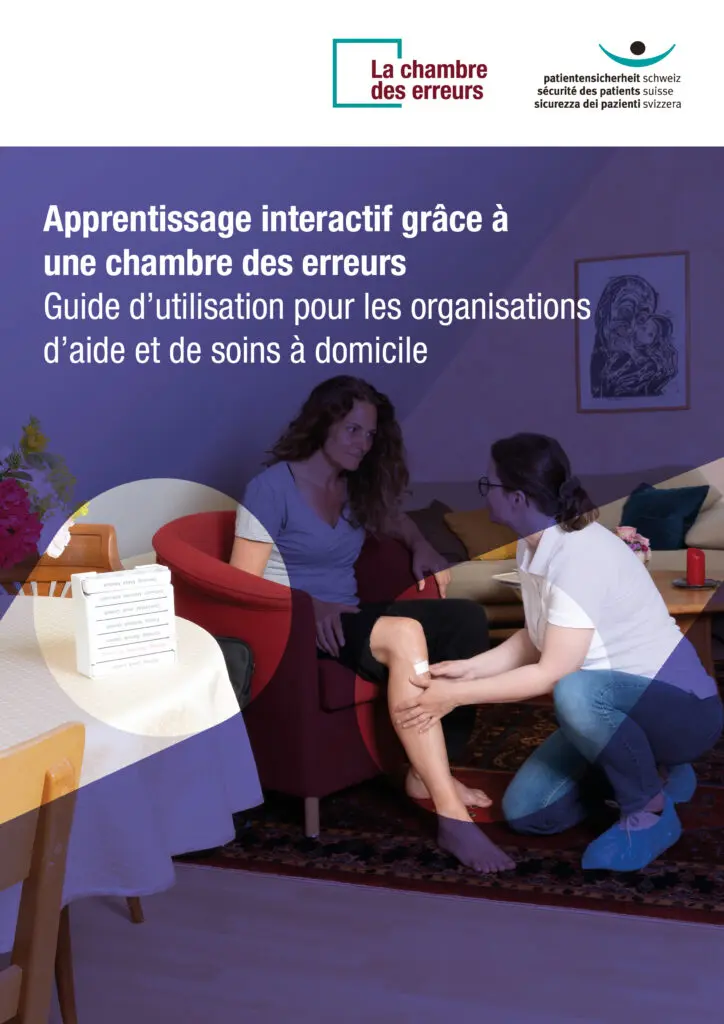La chambre des erreurs pour les organisations d’aide et de soins à domicile sensibilise aux risques pour la sécurité des client·e·s dans le cadre des soins à domicile et aide les professionnel·le·s à les identifier dans leur travail quotidien et à les prévenir de manière proactive. Le guide contient des instructions détaillées pour réaliser de manière autonome un entraînement par simulation. Il propose également plusieurs cas concrets de client·e·s ainsi qu’une description d’un centre d’aide et de soins à domicile permettant la mise en scène des scénarios, incluant divers matériels nécessaires à leur réalisation. De plus, des enregistrements audio illustrant des interactions interpersonnelles sont disponibles pour rendre la formation encore plus réaliste.