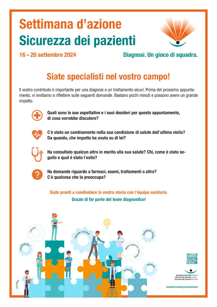 I pazienti e i loro familiari possono fare qualcosa per la sicurezza negli ospedali, nelle case di cura e negli studi medici. Il materiale qui presentato contiene informazioni e consigli importanti.
